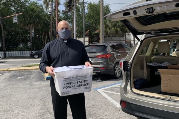 Featured photo: Bishop Demetrios of Mokissos delivers 800+ masks to the U.S. Post Office in St. Augustine for distribution to all corners of the United States.