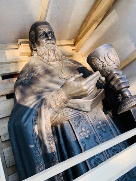 The monument arrived to the church on July 15. Fr. Victor reports that the Russian Aeroflot airlines transported the statue free of charge and that it passed through customs “like a breeze.”
