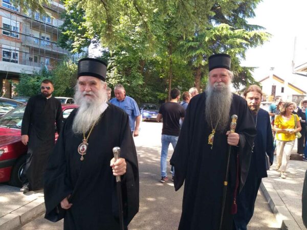Ispred suda je bio prisutan veliki broj građana koji su aplauzima i uzvicima “Ne damo svetinje, ne damo vladiku”, pozdravili mitropolita Amfilohija, episkopa Joanikija i sveštenike.