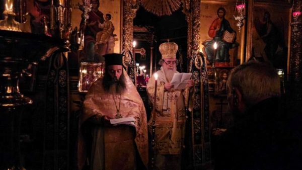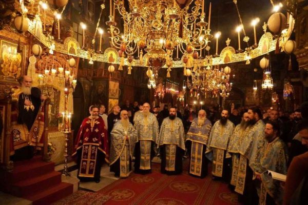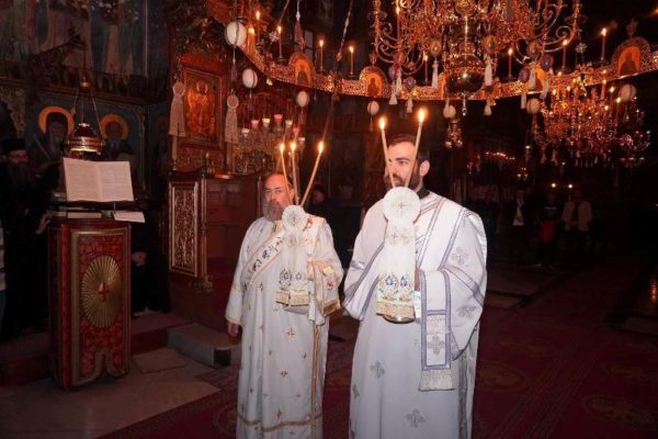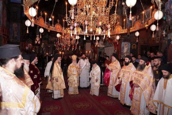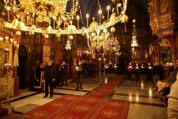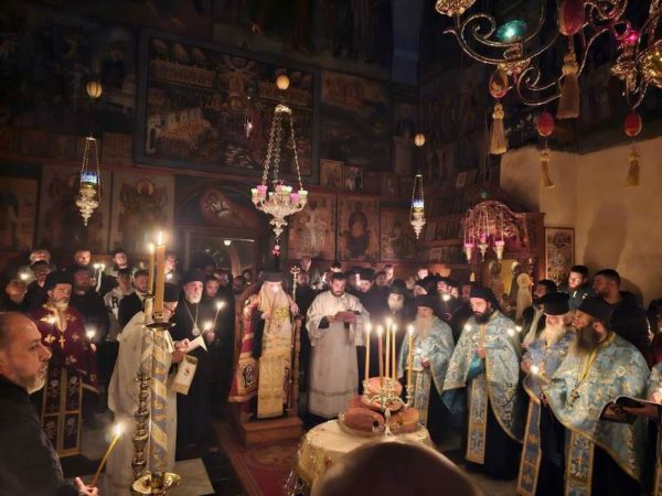 The main feast of Saint Sabba the Sanctified: On Monday December 5/18, 2023, the All-night Vigil was presided over by H.H.B. our Father and Patriarch of Jerusalem Theophilos, with the co-celebration of their Eminences, Archbishop Aristarchos of Constantina and Metropolitan Joachim of Helenoupolis, Holy Sepulchre Hieromonks and Priests from the Bethlehem and Galilee districts. The chanting was delivered by Hierodeacon Simeon and the Monastery Fathers on the right in Greek and by a Byzantine choir from Bethlehem on the left in Arabic, as the Vigil was attended by local faithful Christians.