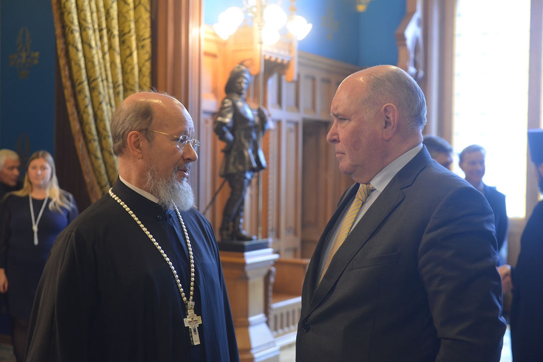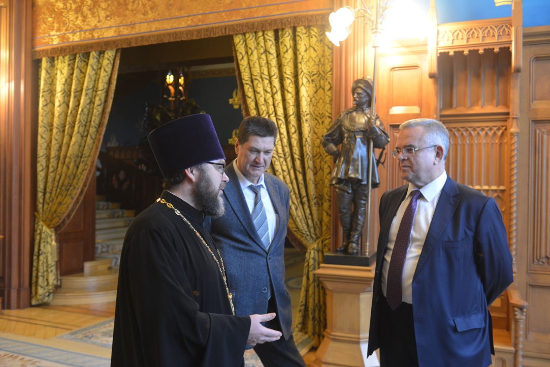 Among the guests from the Church were Metropolitan Hilarion of Volokolamsk, chairman of the Moscow Patriarchate department for external church relations (DECR), Archpriest Nikolay Balashov, a DECR vice-chairman; Archimandrite Philaret (Bulekov), a DECR vice-chairman; Archpriest Igor Yakimchuk, DECR secretary for inter-Orthodox relations; Archpriest Sergiy Zvonarev, DECR secretary for the far abroad countries; and Rev. Dimitry Safonov, DECR secretary for interreligious relations.