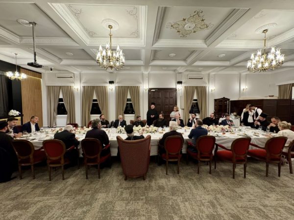 Following a visit and guided tour of the beautiful Church of the Holy Archangels, the Archbishop of Albania and his delegation were led to the Community Hall, where an official dinner was held in his honour. The event was graced by the presence of His All-Holiness Ecumenical Patriarch Bartholomew, other hierarchs, and distinguished guests.