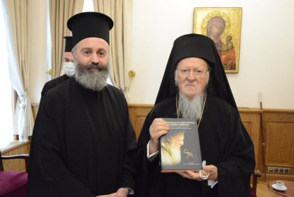 His Eminence, Archbishop Makarios of Australia offered to His All Holiness the dedicatory volume “Βαρθολομαίω τω Οικουμενικώ ευλαβικόν αφιέρωμα”, which was edited by the Archdiocese of Australia on the occasion of the completion of thirty years of patriarchal ministry of His All Holiness Ecumenical Patriarch Bartholomew.