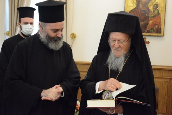 The three new Bishops of the Mother Church asked for and received the venerable Patriarchal wishes for the beginning of their hierarchical ministry. The newly ordained Bishops Bartholomew of Charioupolis, Assistant to the Archbishop of Australia, in the capital city of Canberra, was unable to travel from Australia to Constantinople due to the continuing force of restrictive measures in his area.