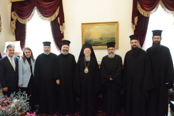 His Holiness Ecumenical Patriarch Bartholomew received in a meeting, on January 29, 2022, His Eminence Archbishop Makarios of Australia, together with the newly ordained Bishops of the Holy Archdiocese of Australia,. His Grace Bishop Kyriakos of Sozopolis, His Grace Bishop Christodoulos of Magnesia, and His Grace Bishop Evmenios of Kerasountos, assistant Bishops to His Eminence, the Archdeacon Rev Deacon Athenagoras Karakonstantakis, as well as Dr. Theodosios Penklis, with his wife Mrs. Marianna Penklis.