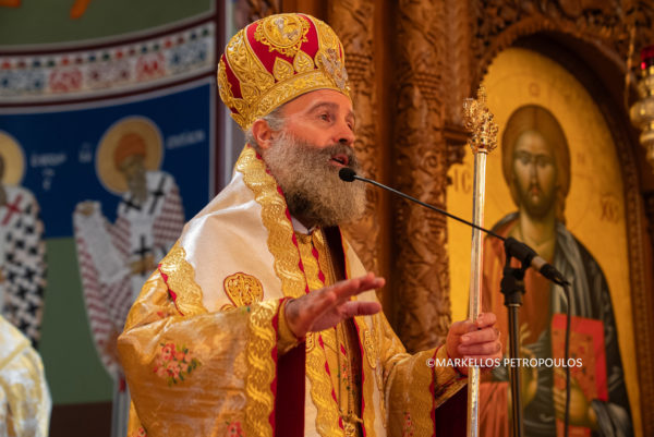 On the fourth Sunday of Lent, 30 March, the day in which the Church honours the memory of Saint John Climacus of Sinai, the author of ‘the Ladder”, His Eminence Archbishop Makarios of Australia liturgised at the Church of Panagia Soumela, in Keilor East, Melbourne, in the Holy Diocese of Chora. Joining his Eminence in concelebration were Their Graces, Bishop Evmenios of Chora and Bishop Kyriakos of Melbourne, while among the large congregation was the Consul General of Greece in Melbourne, Ms. Dimitra Georgantzoglou.