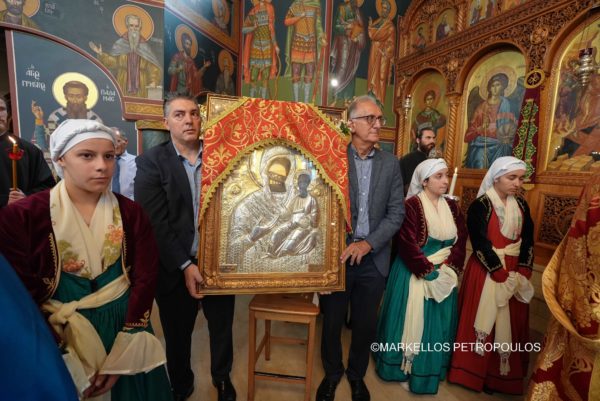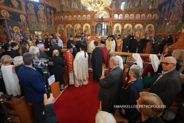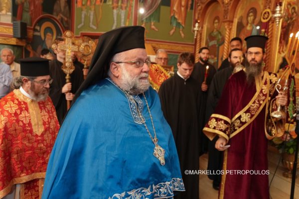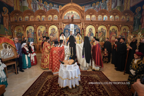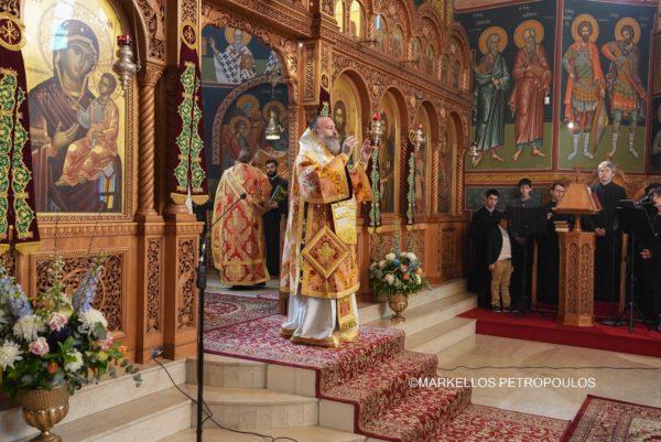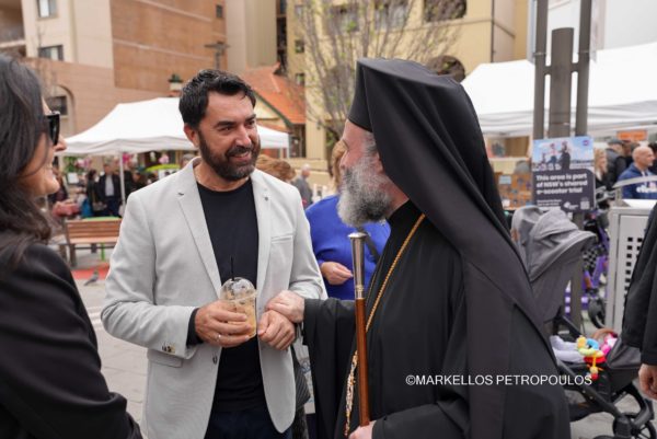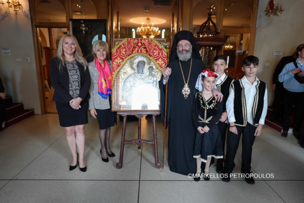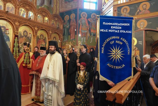 On Sunday, 29 September, in the Sydney suburb of Kogarah, the festivities in honour of Panagia Myrtidiotissa culminated with due splendour. A crowded church of devout Christians from the local Parish – Community of The Resurrection of Christ, Our Lady of Myrtles and Saint Elesa, as well as many visitors from other areas of Sydney, all reverently participated in the Hierarchical Divine Liturgy, which was presided over by His Eminence Archbishop Makarios of Australia, likewise in the all-day cultural program that followed, with traditional dances, sounds and tastes from the homeland.