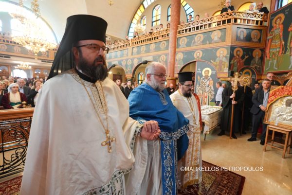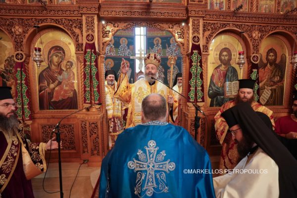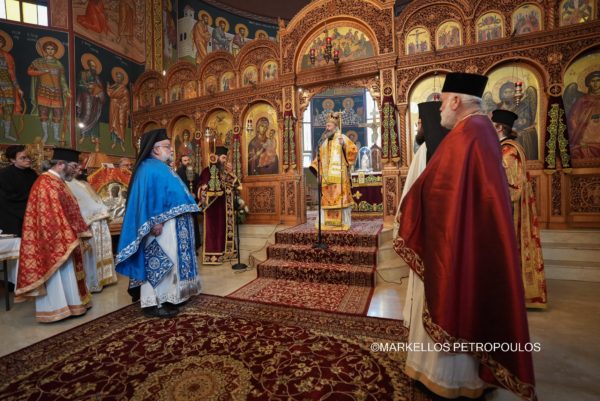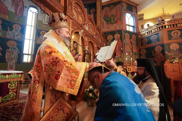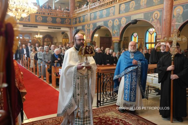 During the Divine Liturgy, His Eminence was joined in concelebration by Their Graces, Bishop Iakovos of Miletoupolis, Bishop Christodoulos of Magnesia (Hierarchical Proistamenos of the celebrating Church), the Chancellor of the Holy Archdiocese, Archimandrite of the Ecumenical Throne, Very Rev. Christophoros Krikelis, and a multitude of clergy from the city of Sydney, including Fr. Stavros Agoroudis, who was honoured by His Eminence with the conferment of the office of Archimandrite.