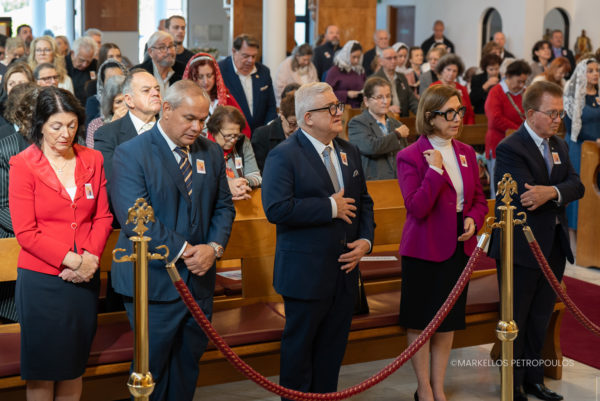 During his inspired sermon, the Archbishop analysed the Gospel passage of the day, describing the miraculous healing of the two blind men by Christ in Capernaum, connecting it with the lives of the patroness of the Parish, Saint Anna, and the Great Martyr Saint Panteleimon, who is honoured on this day. To begin with, he explained that the two blind men were healed thanks to their deep faith and trust in the Lord (“According to your faith be it done to you”) and he conveyed that “our faith is not and cannot be simply a mental process, nor an emotional desire. Our faith must be a living trust. It must signal our absolute trust in God and our surrender to His will, regardless of the difficulties we face.”
