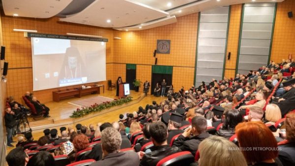 The ceremony began with an address by the Rector of the University of Thessaly, Professor Charalambos Billinis, who noted that Archbishop Makarios “is among the personalities who have supported and advanced the mission of the University of Thessaly and left their mark on the academic community,” adding that “for many years he offered valuable service as a Visiting Professor in the postgraduate programs, leaving an excellent impression on both students and fellow academics.”