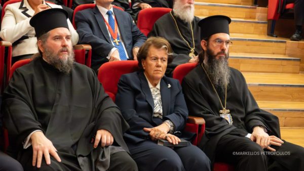 The ceremony, hosted in the “Hippocrates” Auditorium of the Department of Medicine, was attended on behalf of His All-Holiness Ecumenical Patriarch Bartholomew by His Eminence Metropolitan Philotheos of Thessaloniki; representing the Holy Eparchial Synod of the Archdiocese of Australia was His Grace Bishop Athinagoras of Canberra. Also present were the local hierarch, His Eminence Metropolitan Ieronymos of Larissa and Tyrnavos, and a host of Metropolitans and Bishops, including Their Eminences Metropolitan Ignatios of Demetrias and Almyros, Metropolitan Grigorios of Cameroon, Metropolitan Georgios of Kitros, Katerini and Platamon, Metropolitan Chariton of Elassona, Metropolitan Timotheos of Thessaliotis and Fanariofersala, Metropolitan Ioustinos of Nea Krini and Kalamaria, Metropolitan Chrysostomos of Trikala, Gardiki and Pyli, and Metropolitan Symeon of Fthiotida, as well as Their Graces Bishop Epiphanios of Olvia, Bishop Nikiforos of Amoriou, Bishop Prodromos of Toliara and Southern Madagascar, and Bishop Isaak of Bujumbura and Burundi.