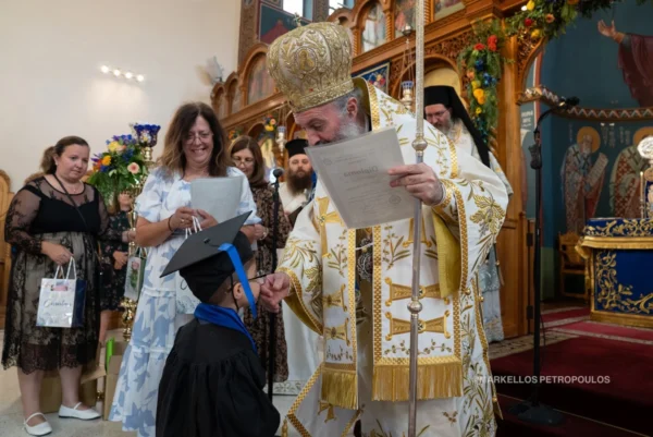On Sunday, 7 December, during his visit to the Parish of Saint Nicholas in Marrickville, Sydney, His Eminence Archbishop Makarios of Australia had the joy of participating in a modest yet heartfelt event held in honour of the children completing their attendance in the Early Childhood Groups of the Greek Welfare Centre and preparing to move on to Primary School.