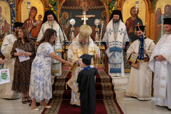 At the graduation event for the children moving on to the next stage of their schooling, His Eminence Archbishop Makarios awarded the corresponding certificates and, along with his paternal blessings, offered commemorative gifts to the children.