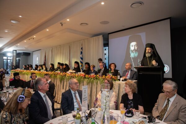 Archbishop Makarios was honoured by 1300 guests from all of Australia at the dinner celebrating his name day. Representing Patriarch Bartholomew was Metropolitan Ambrosios of Korea. Other Hierarchs included Singapore, Hong Kong, Madagascar, Chicago, the Church of Antioch. Guests included the Governor of NSW Margaret Beazley, Senator Andrew Bragg and Hon. Anthony Albanese.
