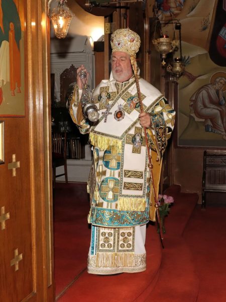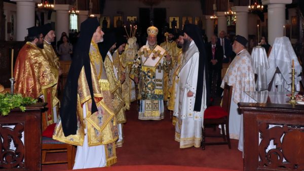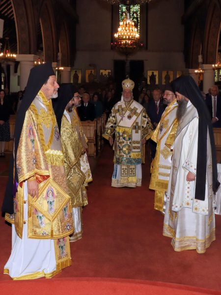 Concelebrating with the Archbishop were Their Eminences Metropolitan Iakovos of Ireland and Metropolitan Nikodemos of Nigeria, Their Graces Bishop Maximos of Melitene, Bishop Raphael of Ilion, and Bishop Iakovos of Claudiopolis. Metropolitan Athanasios of Koloneia prayerfully attended.