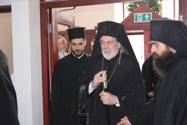 Upon their arrival, Archbishop Nikitas officiated at the Service of the Bridegroom. He was subsequently greeted by the Reverend Presbyter Professor John Behr, who is responsible for the parish. Reverend Behr expressed the community’s deep appreciation for the Archbishop’s presence.