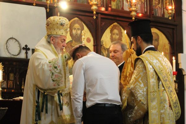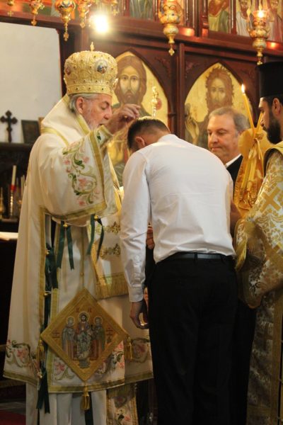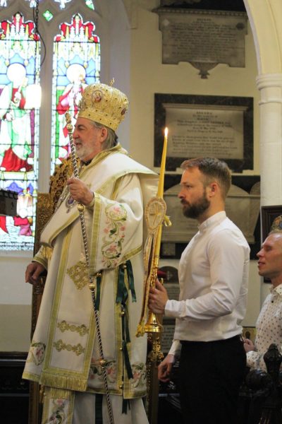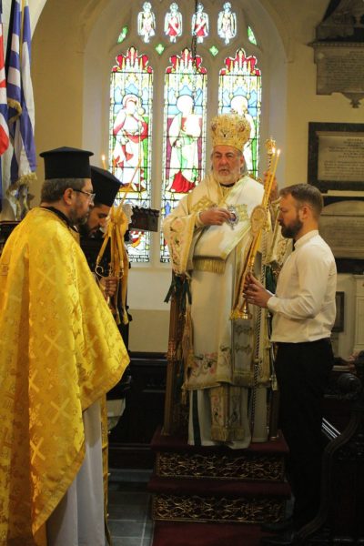 The congregation gathered to worship together in unity. At the conclusion of the Divine Liturgy, His Eminence Archbishop Nikitas tonsured Arsenios Copleston as Reader. His Eminence also awarded the Medal Cross of the Holy Archdiocese of Thyateira and Great Britain to Mr. Robert Skrivanos, in recognition of his dedicated service and generous support to the Torquay parish over 55 years.