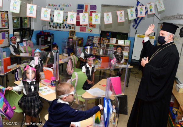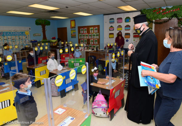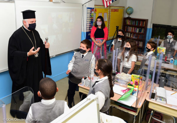 The Archbishop of America, His Emience Elpidophoros, toured two Greek-American Parochial Schools on Friday morning, in order to visit the pupils and educators and to personally verify the health and safety measures that have been mandated.