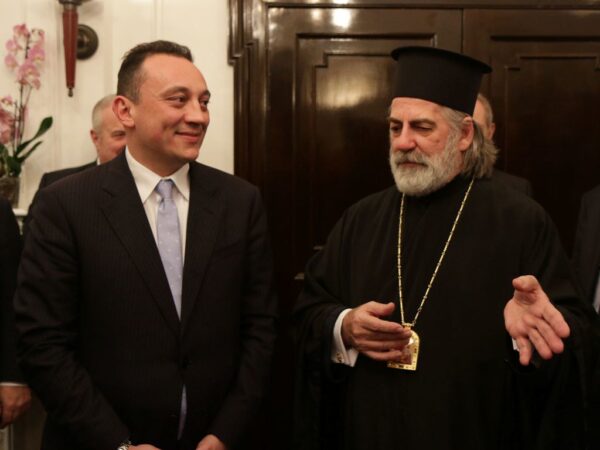The Archbishop of Thyateira and Great Britain, His Eminence Nikitas, over the weekend hosted a reception in honor of Greece’s visiting deputy foreign minister, Constantinos Vlasis.