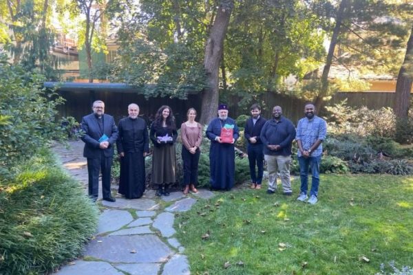 During his visit to Massachusetts for the International Commission for Anglican-Orthodox Theological Dialogue, on Friday, October 11, 2024, His Eminence Archbishop Serafim (Kykotis) of Zimbabwe and Angola met with students belonging to Harvard Divinity School’s Orthodox Christian Student Community, nicknamed “HDS Theosis.” Accompanying His Eminence were Rev. Protopresbyter Giorgi Zviadadze, Rector of Tbilisi Theological Academy and Seminary, and Rev. Fr. Vassilios Bebis, Th.D., Orthodox Christian Chaplain for Harvard University.