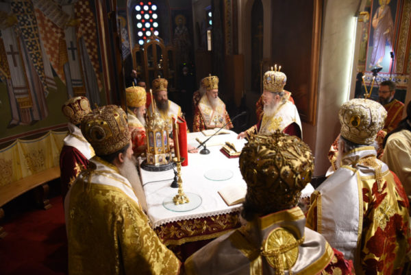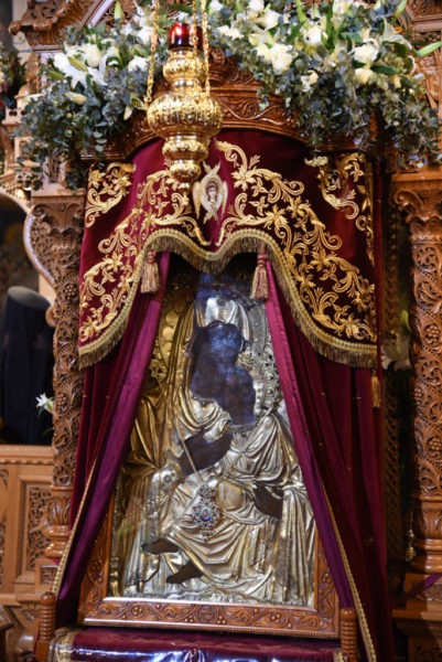 The Metropolitan of Fthiotida, His Eminence Symeon, officiated at the festal services at the Cathedral, where a wonder-working icon of the Panaghia, the Virgin Mary, is displayed. His Eminence was accompanied by several other Metropolitans and hierarchs, who co-officiated at the service.