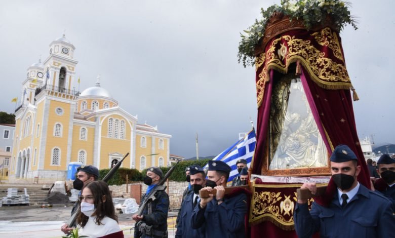 The Metropolitan of Fthiotida, His Eminence Symeon, officiated at the festal services at the Cathedral, where a wonder-working icon of the Panaghia, the Virgin Mary, is displayed. His Eminence was accompanied by several other Metropolitans and hierarchs, who co-officiated at the service.