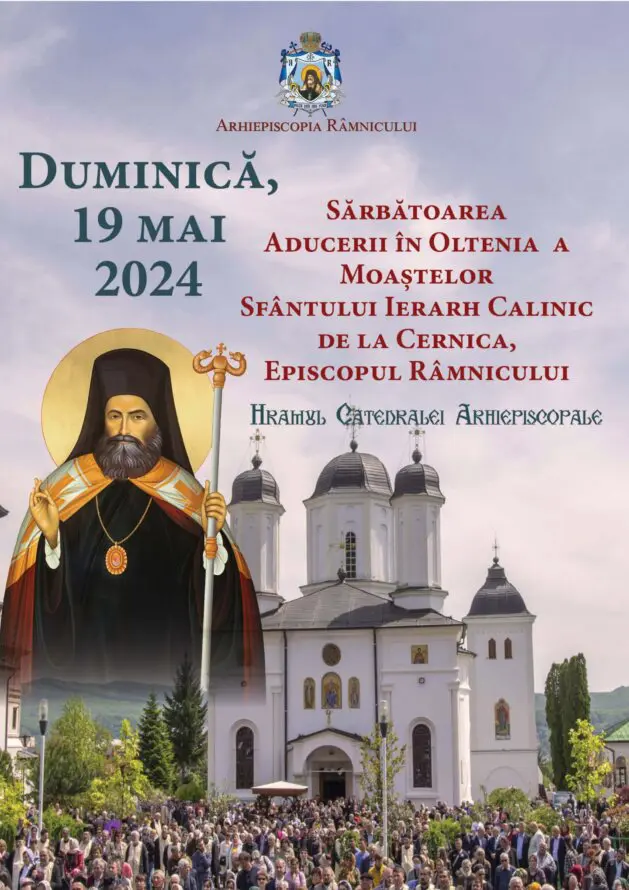 Arhiepiscopia Râmnicului serbează în a treia duminică după Paști aducerea în Oltenia a moaștelor Sf. Calinic de la Cernica, prin mai multe manifestări culturale și religioase.