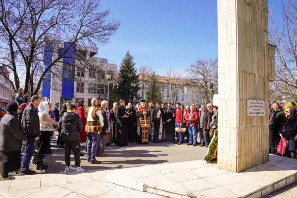 Slujba a fost urmată de un moment de rugăciune la monumentul victimelor „reeducării” de la Pitești, situat în centrul orașului.