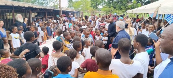 He then conducted group baptisms of young children, blessed the bountiful festive table, and distributed food to all the faithful, including sacks of corn flour, the staple food of the local population.