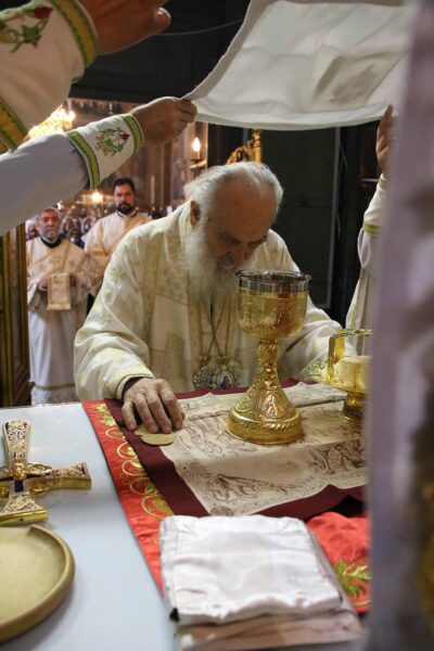 His Holiness Irinej, Serbian Patriarch, celebrated the Holy Hierarchal Liturgy in the church of the Ascension of Our Lord with the concelebration of protopresbyter-staurophor Vaja Jovic, archpriest Dejan Jakovljevic, presbyterс Predrag Timotijevic and Slavisa Popovic, protodeacon Stevan Rapajic and deacon Bosko Savic on 28 May 2020.