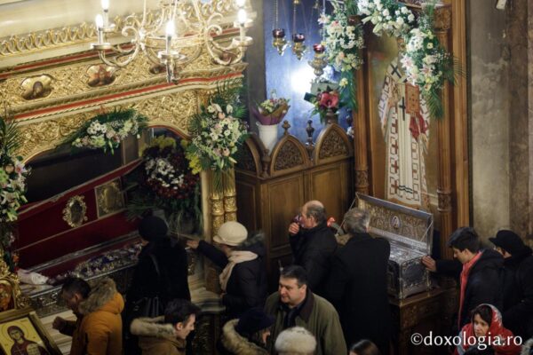În ajunul sărbătorii, sâmbătă, Preasfințitul Părinte Calinic Botoșăneanul, Episcop vicar al Arhiepiscopiei Iașilor a oficiat la catedrală slujba privegherii în cinstea sfântului.