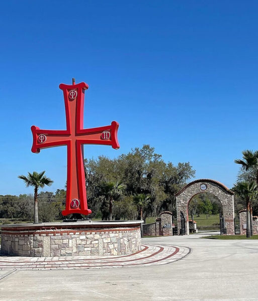BEAUTIFUL NEW CROSS WELCOMES PILGRIMS AT PANAGIA VLAHERNON MONASTERY IN FLORIDA