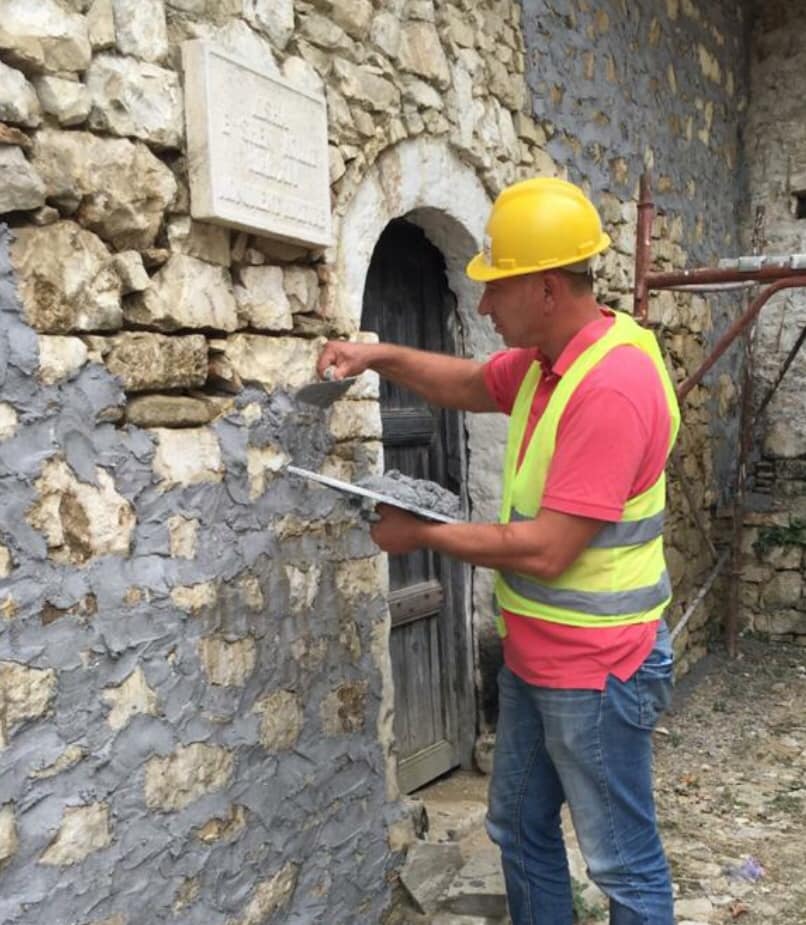 “Pas pastrimit e larjes në mënyrë mekanike të pjesës së muraturës ku elementi lidhës ka qenë shume i degraduar, po ndërhyhet me injektimin e fugatim me llaç – gëlqere qull të stazhionuar në raportin 1:3. Pastrimi më pas me furçë teli në fazën finale do të mund të nxjerrë në dritë fasadën perëndimore në të cilën prej dekadash nuk ish ndërhyrë”, shprehet DRTK Berat.