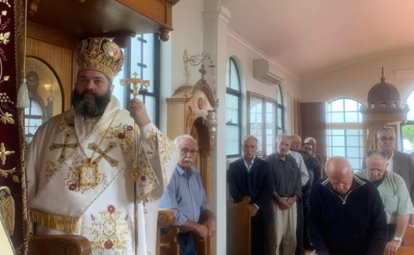 His Grace Bishop Bartholomew of Charioupolis served Matins and the Divine Liturgy at the Church of St Panteleimon in Goulburn today. It was the first service His Grace served in Goulburn following his recent episcopal ordination. Assisting His Grace was Parish Priest Rev Kyriakos Theologou.