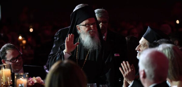 More than 1,000 alumni and friends of Fordham attended the black-tie affair at the New York Hilton Midtown—a new venue for the dinner and a hotel that has hosted every U.S. president since John F. Kennedy. Among the many Orthodox Christian dignitaries were His Eminence Archbishop Demetrios of America (Greek Orthodox Archdiocese), and His Grace Bishop Irinej of Eastern America (Serbian Orthodox Church), a member of the Advisory Council of the Orthodox Christian Studies Center at Fordham. Also present were the Co-Directors of the Orthodox Christian Studies Center, Professors of Theology, Dr. Aristotle Papanikolaou, Archbishop Demetrios Chair in Orthodox Theology and Culture, and Dr. George Demacopoulos, Fr. John Meyendorff & Patterson Family Chair of Orthodox Christian Studies.