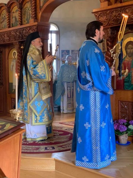 On April 7, 2021, the Great Feast of the Annunciation, His Grace Bishop Irinej of Eastern America celebrated the Vesperal Divine Liturgy of St. John Chrysostom in the parish church of St. George in Elizabeth, New Jersey. Concelebrating with the Bishop were Protopresbyter-Stavrophor Zoran Radovic, parish priest, and Protodeacon Milos Zdralic of the Eastern American Diocese.