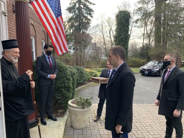 On the eve of New Year, according to the Julian Calendar, January 13, 2021, His Grace Bishop Irinej of Eastern America formally received at the Episcopal Residence and Diocesan Center in New Rochelle, New York, His Excellency Marko Djuric, newly arrived Ambassador of the Republic of Serbia to the United States of America.