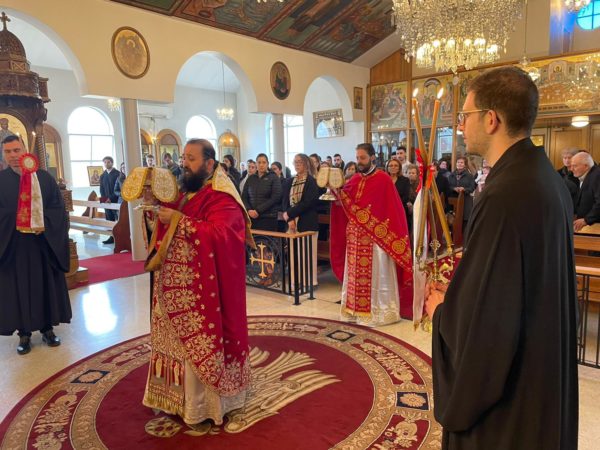 This festal Vespers service, presided over by His Grace Bishop Kyriakos, was served with deep solemnity and beauty. Clergy, chanters, and faithful gathered in reverence as the hymnology of Pentecost began to fill the church. Hymns were chanted, invoking the Holy Spirit and commemorating the souls of the departed on this Saturday of the Souls.