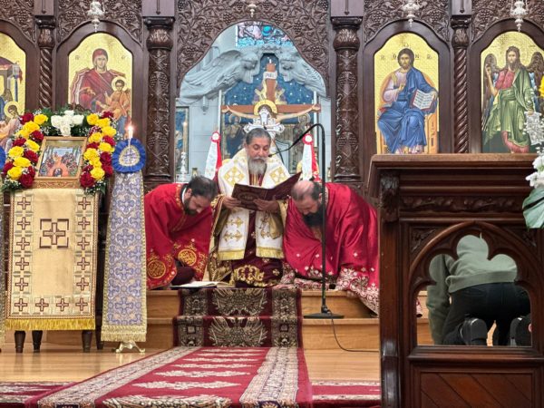 This festal Vespers service, presided over by His Grace Bishop Kyriakos, was served with deep solemnity and beauty. Clergy, chanters, and faithful gathered in reverence as the hymnology of Pentecost began to fill the church. Hymns were chanted, invoking the Holy Spirit and commemorating the souls of the departed on this Saturday of the Souls.