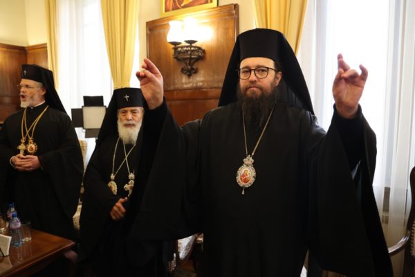 Subsequently, in the reception hall of the Holy Synod, the Patriarch addressed the newly elected Metropolitan, stating: