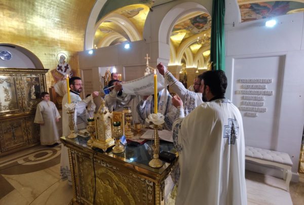 Bishop Stefan celebrated the Holy Liturgy and the commemoration at the tomb of Patriarch Irinej in the crypt of Saint Sava Cathedral