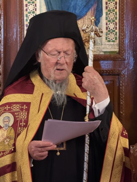 His All-Holiness was earlier addressed with words of reverence and devotion by Metropolitan Maximos of Slyvria.