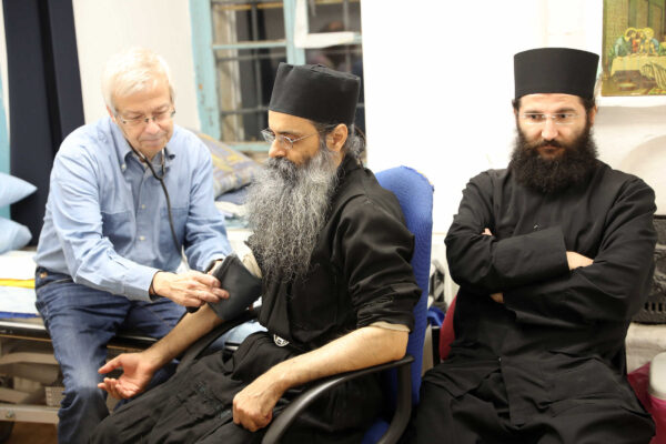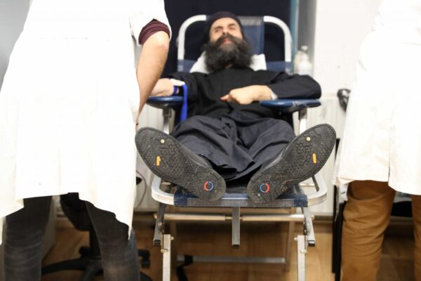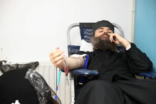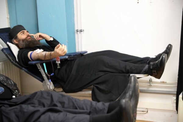 Fotografiile sunt de la o donare de sânge pe care părinții au organizat-o dimpreună cu medici din Grecia în folosul fraților lor mireni.