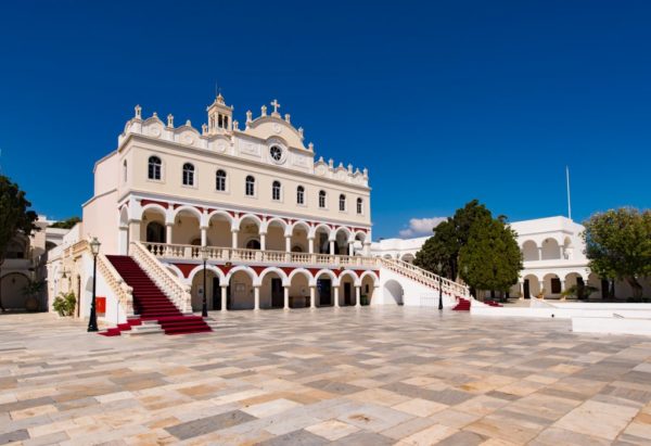 The shrine of the Holy Church of Panagia Evaggelistria of Tinos (Our Lady of Tinos) is the most important orthodox shrines of pilgrimage in Greece and one of the most famous throughout the world. The Church of Evaggelistria was built on the site where the Icon of the Annunciation of the Virgin Mary was miraculously discovered, after the Nun Pelagia had a vision. The faithful believe that the Icon performs miracles, and there are inspiring stories of the redeeming intervention of the Virgin Mary, which people have been fortunate enough to experience after dedicating fervent prayers to Her during difficult times in their lives.