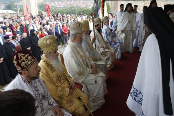 The Holy Hierarchal Liturgy was served by Metropolitan Amfilohije of Montenegro and the Littoral and Their Graces Bishop Teodosije of Raska-Prizren, Justin of Zica, Joakim of Polog-Kumanovo, Atanasije of Milesevo and Dimitrije of Zahumlje-Herzegovina with clergy and faithful people with the students of the Seminary of Prizren who sang responses.