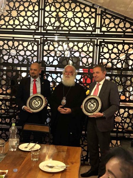 In the evening, the Ambassador of Greece, His Excellency Mr. George Psiachas, and the High Commissioner of Cyprus, His Excellency Mr. Savvas Vladimirou, hosted a dinner in honour of the Patriarch. His Beatitude thanked both Ambassadors for their support of the work of the Patriarchate.