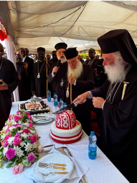 His Beatitude thanked the Elder Metropolitan Makarios of Nairobi for his great contribution to Kenya, the country he loved from the first day he arrived to work in the Mission, the country where he has been fighting for Orthodoxy for 46 consecutive years, sacrificing his academic career, but obeying the admonitions of Saint Sophrony, Archbishop Makarios and Professor Metropolitan Kallistos Ware. As a reward for his great contribution, he named him “Primate and Exarch of Kenya and all East Africa”, and presented him with the relevant Patriarchal Sigillion.