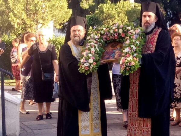 Earlier, His Eminence welcomed the arrival of the miraculous icon of the Panaghia Myrtidiotissa, which was brought to Greece from Smyrna, in western Asia Minor, decades ago.