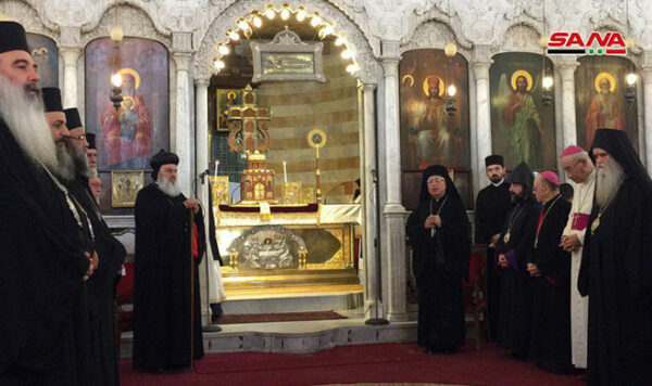 A common prayer was held at Mariamite Cathedral of Damascus on Saturday with the participation of Patriarch Irinej of Serbia, Greek Orthodox Patriarch of Antioch and All East John X Yazigi, Syriac Orthodox Patriarch of Antioch and All East and Supreme Leader of the Syriac Orthodox Church, Mar Ignatius Aphrem II and Patriarch of the Melkite Greek Catholic Church Joseph Absi and heads of the Christian denominations in Syria.