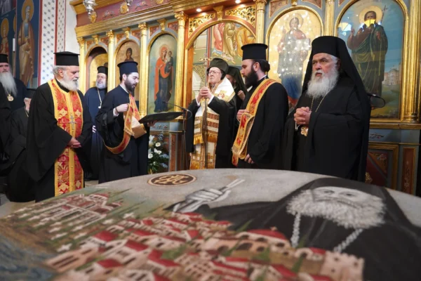 The Shepherd of the flock, His Eminence Metropolitan Philotheos of Thessaloniki, who was present in prayer together with other Hierarchs, addressed His All-Holiness with warm words. In his response, the Ecumenical Patriarch made special reference to the completion of three years since the repose of the ever-memorable Hierarch of the Throne and eminent theologian, Metropolitan John of Pergamon. Immediately thereafter, he celebrated a Trisagion for the repose of the soul of the blessed Hierarch.
